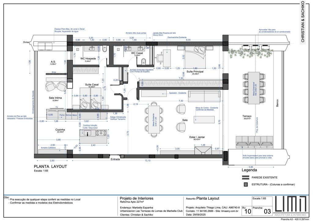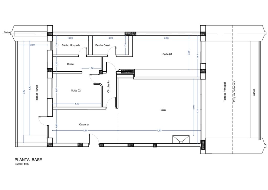 - Terceira planta (Rv10): o projeto quase final elaborado pelo arquiteto Thiago, ainda sem saber exatamente quais eram as colunas estruturais.